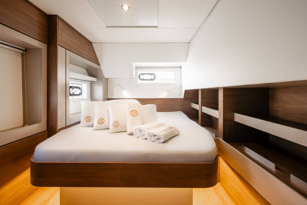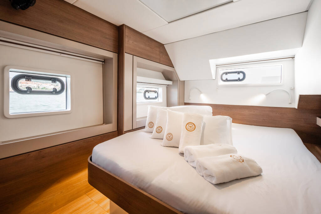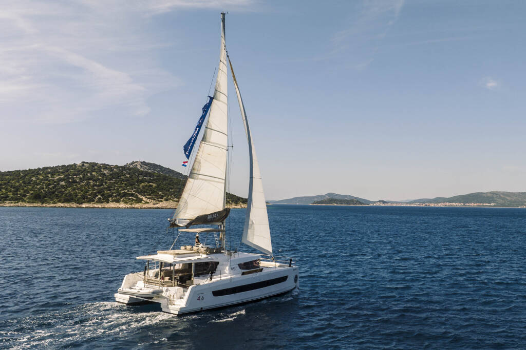 Catamaran Bali 4.6 Optimus, built in 2024 is anchored in the Marina Mandalina, Sibenik, Šibenik region, Croatia. It has 5 + 2 cabins, can accommodate 10 + 2 people and has 4 + 1 toilets.